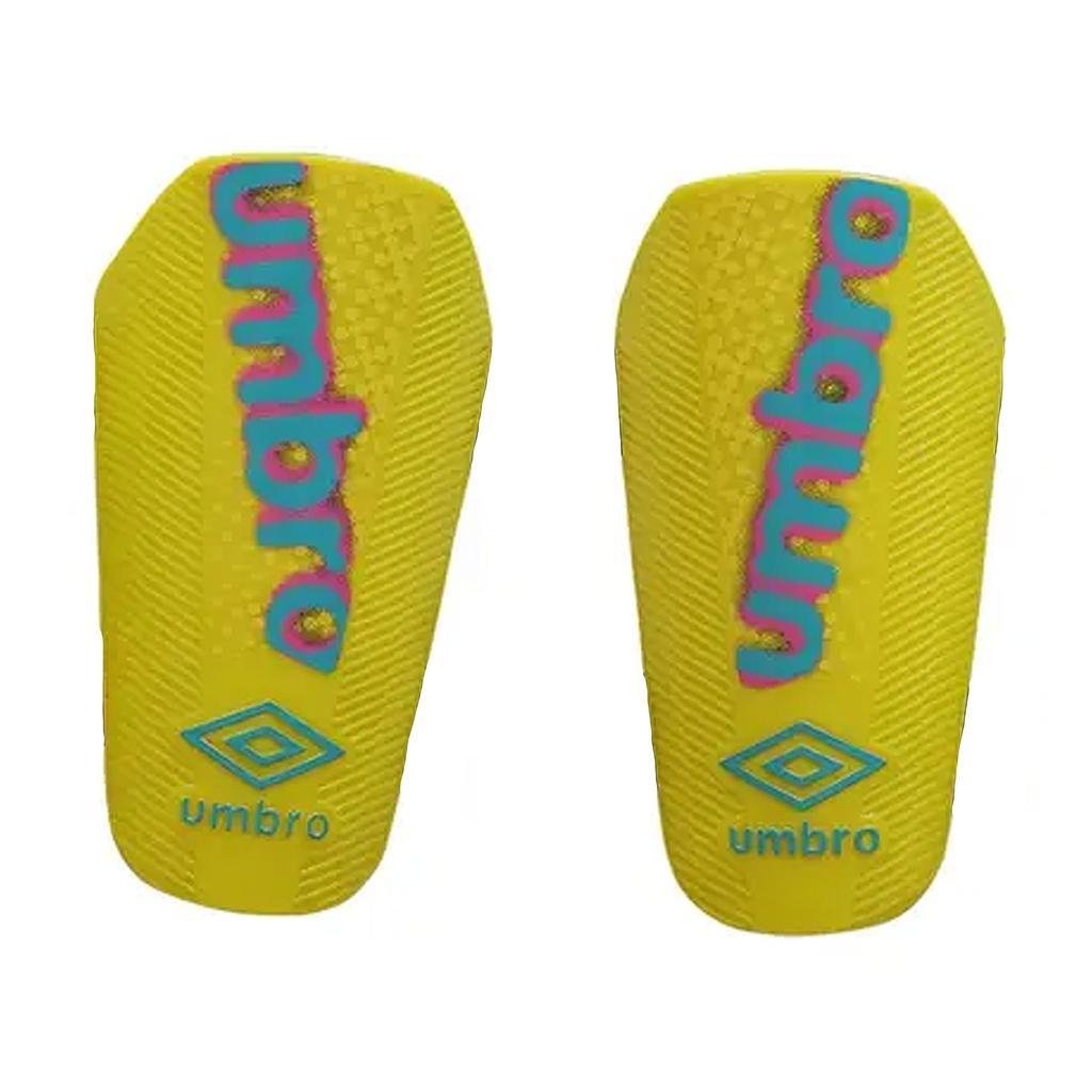 21441U-MVZ Umbro Canilleras Futbol Stratus Slip Nc JNR Safety Yellow/Atomic Blue/Multi